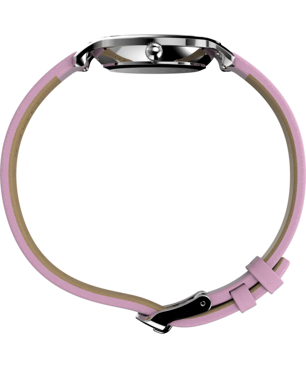 Let’s snuggle! Complete with a dusty lavender smooth grain leather strap ethically sourced from the Leather Working Group (LWG), this adorable update to our Transcend brings an effortless touch of color to your look. On the silver sunray dial, you’ll find minimalist markers, a thin handset, and Snoopy and Woodstock sharing a tender moment.